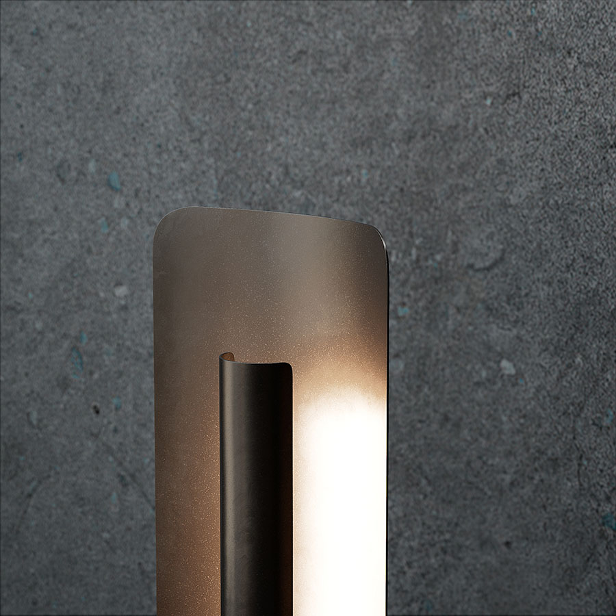 Una pieza delantera proyecta la fuente de luz, mientras la trasera la refleja suavemente hacia el frente, consiguiendo una iluminación etérea y controlada. La luz no se impone, se revela a través del propio acero.